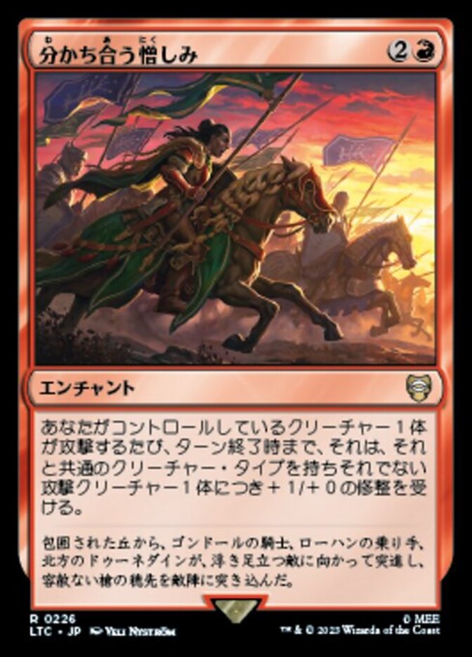 | Rules | Whenever a creature you control attacks, it gets +1/+0 until end of turn for each other attacking creature that shares a creature type with it. |