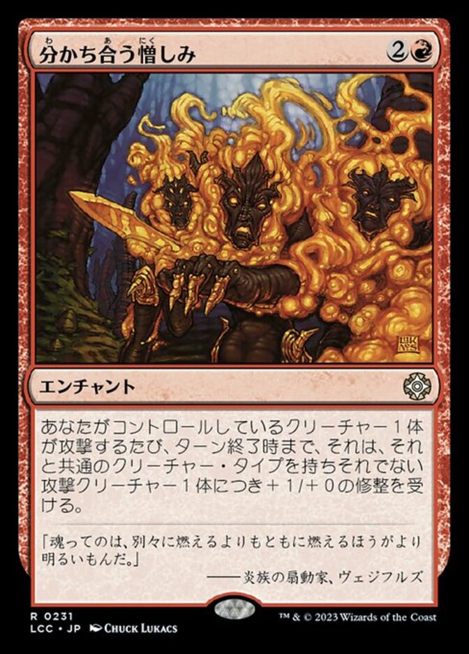 | Rules | Whenever a creature you control attacks, it gets +1/+0 until end of turn for each other attacking creature that shares a creature type with it. |