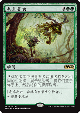 | Rules | Search your library for up to two creature cards with different names, reveal them, put them into your hand, then shuffle. |
