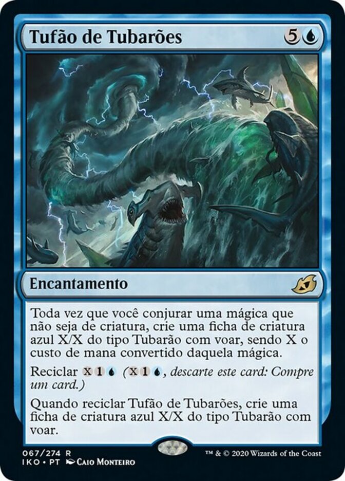 | Rules | Whenever you cast a noncreature spell, create an X/X blue Shark creature token with flying, where X is that spell's mana value. Cycling (, Discard this card: Draw a card.) When you cycle Shark Typhoon, create an X/X blue Shark creature token with flying. |