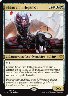 | Rules | Flying When Sharuum the Hegemon enters the battlefield, you may return target artifact card from your graveyard to the battlefield. |