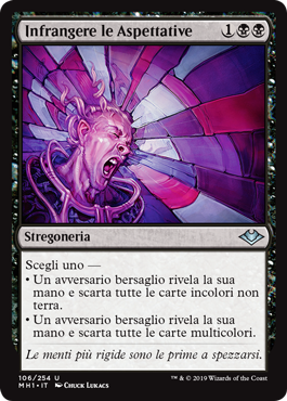 | Rules | Choose one — • Target opponent reveals their hand and discards all colorless nonland cards. • Target opponent reveals their hand and discards all multicolored cards. |
