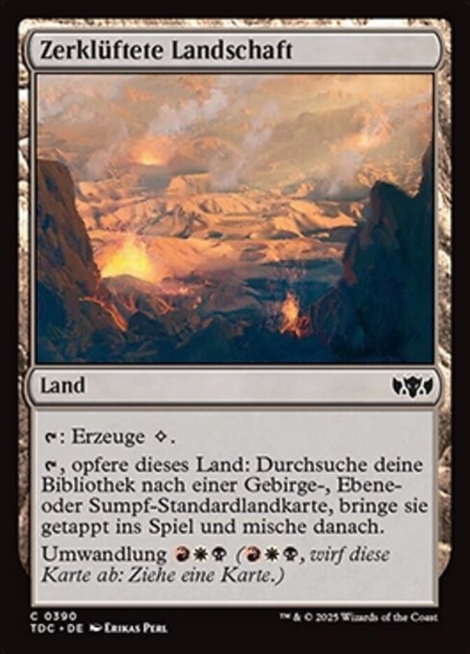 | Rules | : Add . , Sacrifice Shattered Landscape: Search your library for a basic Mountain, Plains, or Swamp card, put it onto the battlefield tapped, then shuffle. Cycling (, Discard this card: Draw a card.) |