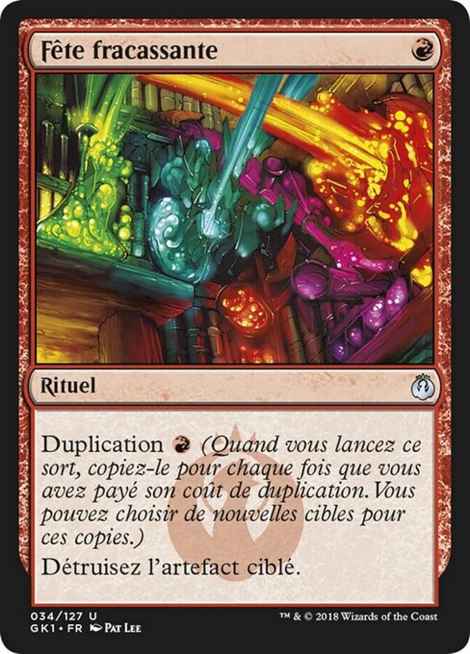 | Rules | Replicate (When you cast this spell, copy it for each time you paid its replicate cost. You may choose new targets for the copies.) Destroy target artifact. |