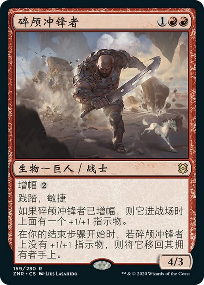 | Rules | Kicker Trample, haste If Shatterskull Charger was kicked, it enters the battlefield with a +1/+1 counter on it. At the beginning of your end step, if Shatterskull Charger doesn't have a +1/+1 counter on it, return it to its owner's hand. |