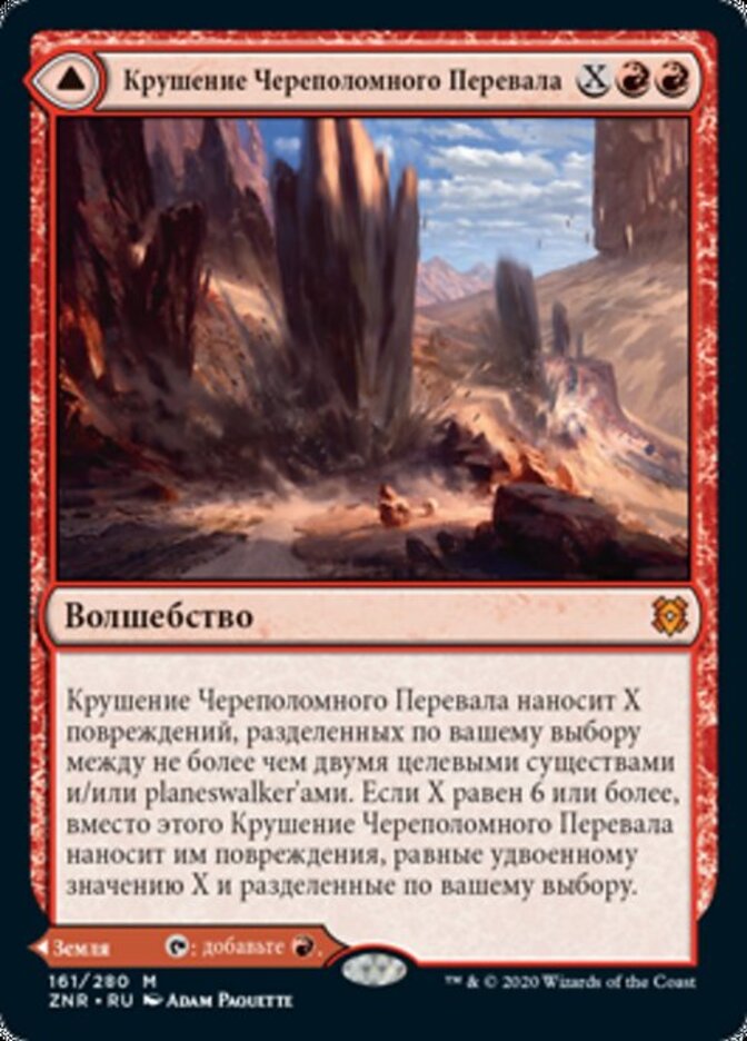 | Rules | Shatterskull Smashing deals X damage divided as you choose among up to two target creatures and/or planeswalkers. If X is 6 or more, Shatterskull Smashing deals twice X damage divided as you choose among them instead. // As Shatterskull, the Hammer Pass enters the battlefield, you may pay 3 life. If you don't, it enters the battlefield tapped. : Add . |