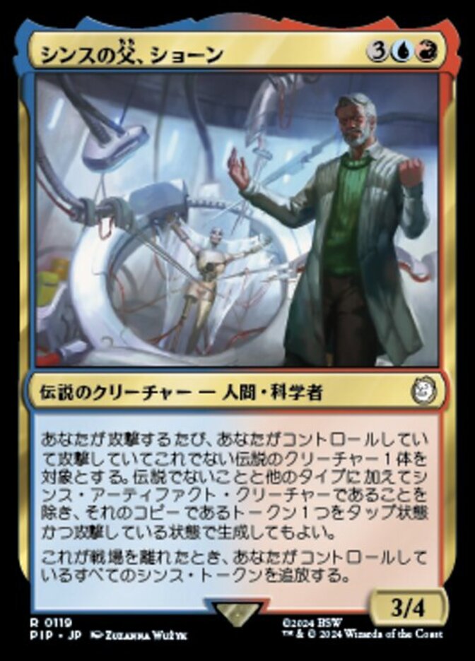 | Rules | Whenever you attack, you may create a tapped and attacking token that's a copy of target attacking legendary creature you control other than Shaun, except it's not legendary and it's a Synth artifact creature in addition to its other types. When Shaun leaves the battlefield, exile all Synth tokens you control. |