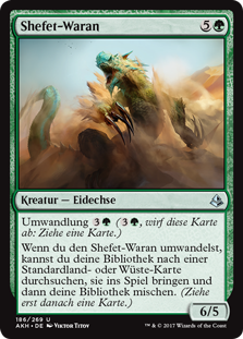| Rules | Cycling (, Discard this card: Draw a card.) When you cycle Shefet Monitor, you may search your library for a basic land card or a Desert card, put it onto the battlefield, then shuffle. (Do this before you draw.) |