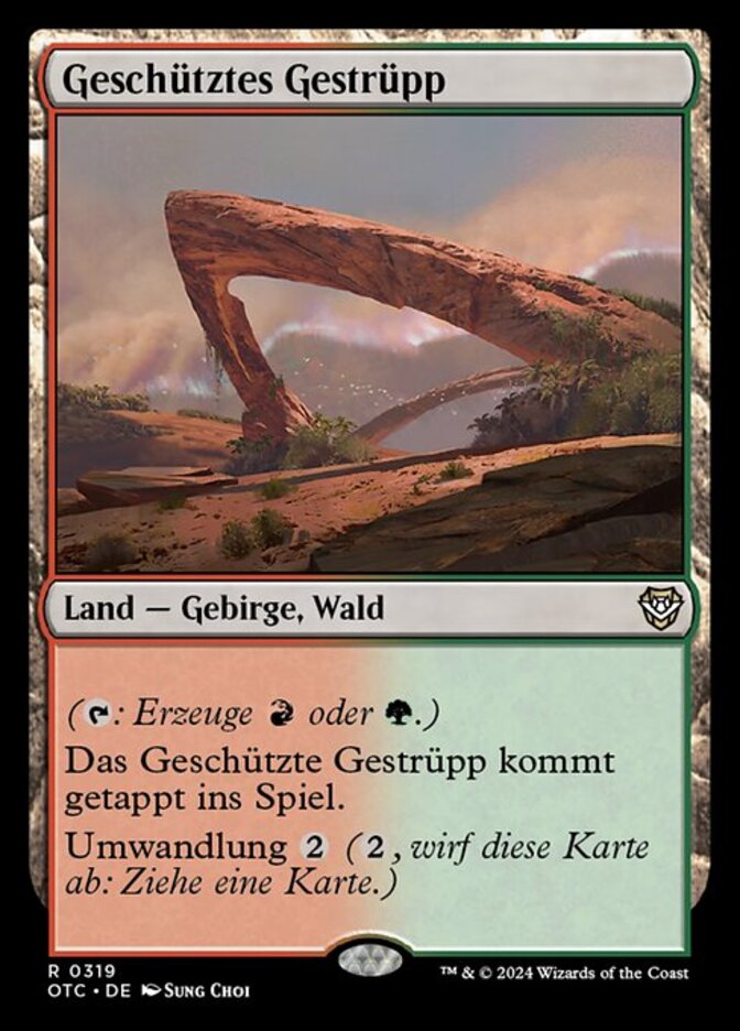 | Rules | (: Add or .) Sheltered Thicket enters the battlefield tapped. Cycling (, Discard this card: Draw a card.) |