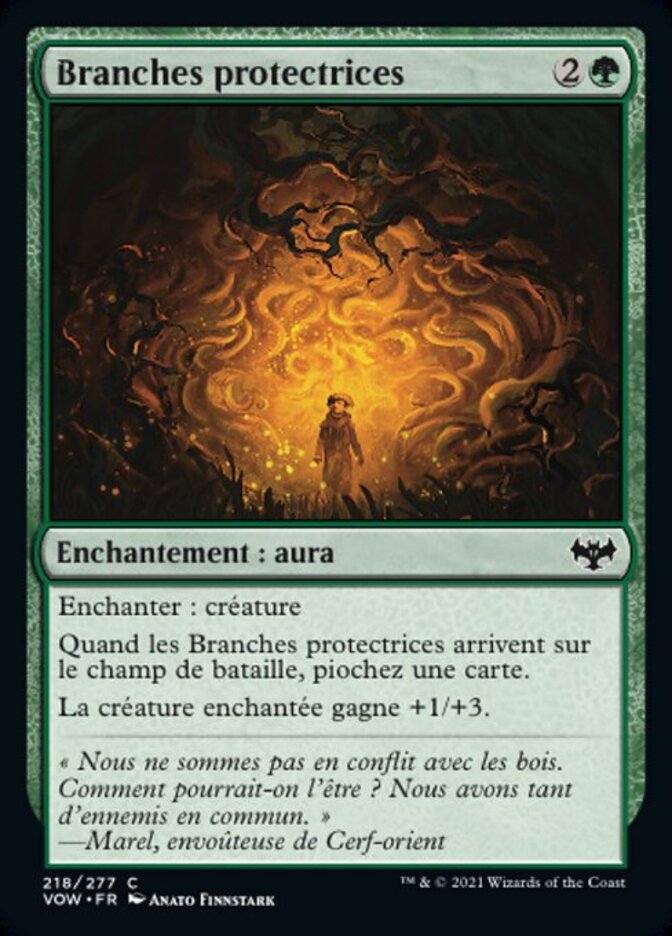 | Rules | Enchant creature When Sheltering Boughs enters the battlefield, draw a card. Enchanted creature gets +1/+3. |