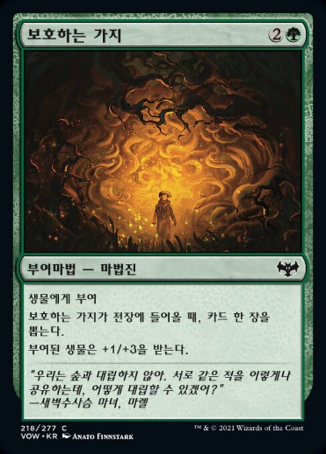 | Rules | Enchant creature When Sheltering Boughs enters the battlefield, draw a card. Enchanted creature gets +1/+3. |