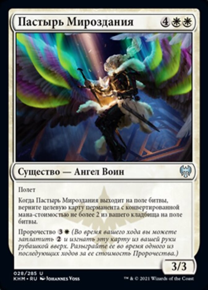 | Rules | Flying When Shepherd of the Cosmos enters the battlefield, return target permanent card with mana value 2 or less from your graveyard to the battlefield. Foretell (During your turn, you may pay and exile this card from your hand face down. Cast it on a later turn for its foretell cost.) |