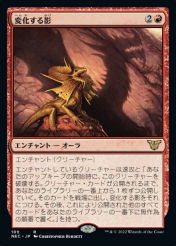 | Rules | Enchant creature Enchanted creature has haste and "At the beginning of your upkeep, destroy this creature. Reveal cards from the top of your library until you reveal a creature card. Put that card onto the battlefield and attach Shifting Shadow to it, then put all other cards revealed this way on the bottom of your library in a random order." |