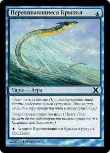 | Rules | Enchant creature (Target a creature as you cast this. This card enters the battlefield attached to that creature.) Enchanted creature has flying. (It can't be blocked except by creatures with flying or reach.) : Return Shimmering Wings to its owner's hand. |