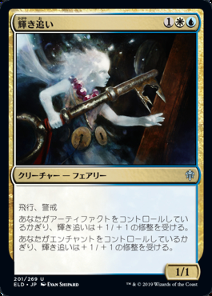 | Rules | Flying, vigilance Shinechaser gets +1/+1 as long as you control an artifact. Shinechaser gets +1/+1 as long as you control an enchantment. |