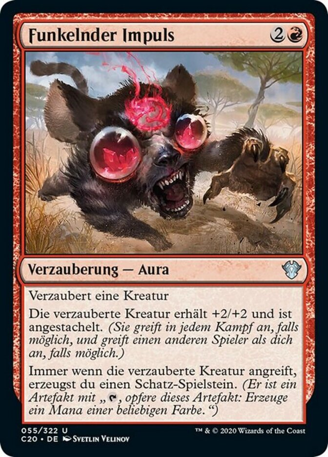 | Rules | Enchant creature Enchanted creature gets +2/+2 and is goaded. (It attacks each combat if able and attacks a player other than you if able.) Whenever enchanted creature attacks, you create a Treasure token. (It's an artifact with ", Sacrifice this artifact: Add one mana of any color.") |