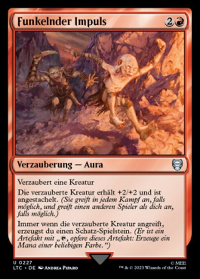 | Rules | Enchant creature Enchanted creature gets +2/+2 and is goaded. (It attacks each combat if able and attacks a player other than you if able.) Whenever enchanted creature attacks, you create a Treasure token. (It's an artifact with ", Sacrifice this artifact: Add one mana of any color.") |