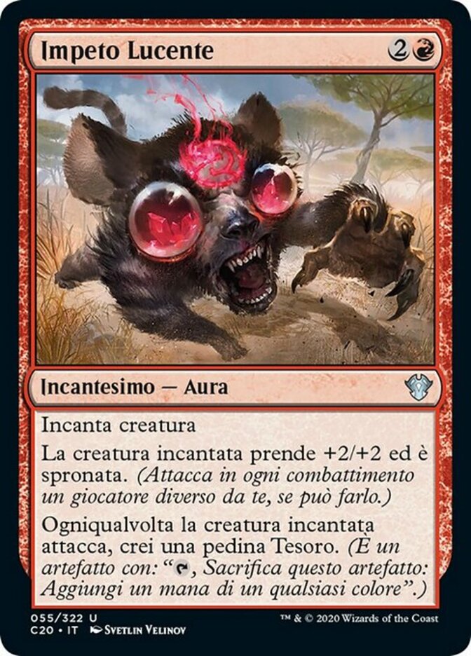 | Rules | Enchant creature Enchanted creature gets +2/+2 and is goaded. (It attacks each combat if able and attacks a player other than you if able.) Whenever enchanted creature attacks, you create a Treasure token. (It's an artifact with ", Sacrifice this artifact: Add one mana of any color.") |