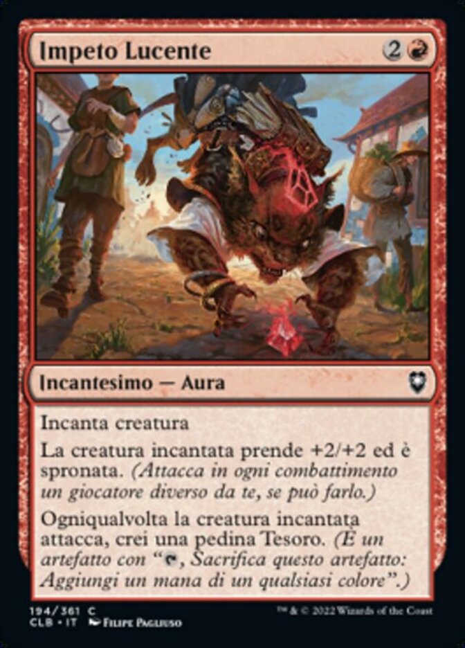 | Rules | Enchant creature Enchanted creature gets +2/+2 and is goaded. (It attacks each combat if able and attacks a player other than you if able.) Whenever enchanted creature attacks, you create a Treasure token. (It's an artifact with ", Sacrifice this artifact: Add one mana of any color.") |