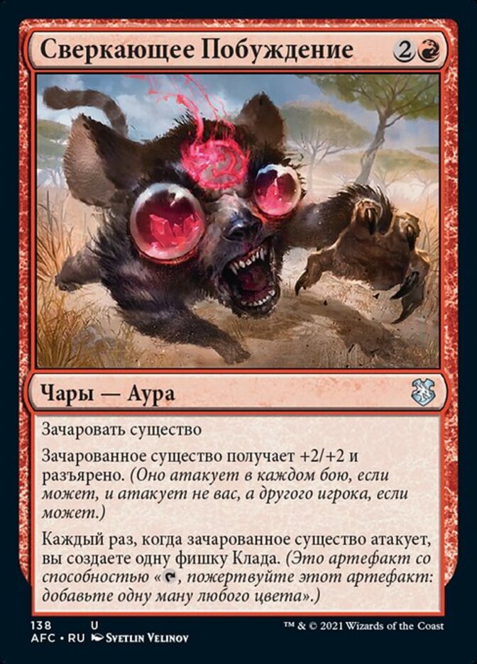 | Rules | Enchant creature Enchanted creature gets +2/+2 and is goaded. (It attacks each combat if able and attacks a player other than you if able.) Whenever enchanted creature attacks, you create a Treasure token. (It's an artifact with ", Sacrifice this artifact: Add one mana of any color.") |