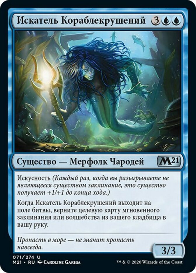 | Rules | Prowess (Whenever you cast a noncreature spell, this creature gets +1/+1 until end of turn.) When Shipwreck Dowser enters the battlefield, return target instant or sorcery card from your graveyard to your hand. |