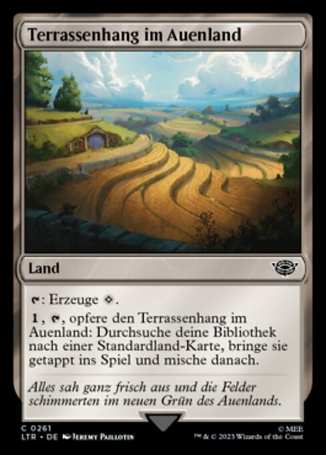 | Rules | : Add . , , Sacrifice Shire Terrace: Search your library for a basic land card, put it onto the battlefield tapped, then shuffle. |