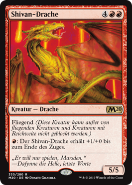 | Rules | Flying (This creature can't be blocked except by creatures with flying or reach.) : Shivan Dragon gets +1/+0 until end of turn. |