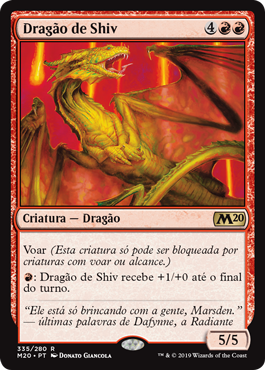 | Rules | Flying (This creature can't be blocked except by creatures with flying or reach.) : Shivan Dragon gets +1/+0 until end of turn. |