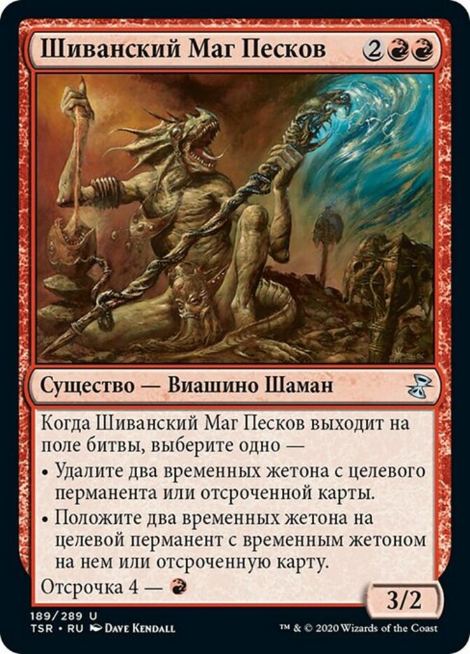 | Rules | When Shivan Sand-Mage enters the battlefield, choose one — • Remove two time counters from target permanent or suspended card. • Put two time counters on target permanent with a time counter on it or suspended card. Suspend 4— |