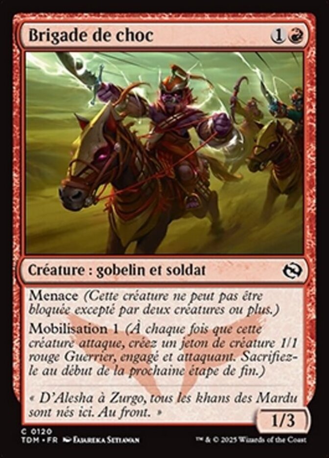| Rules | Menace (This creature can't be blocked except by two or more creatures.) Mobilize 1 (Whenever this creature attacks, create a tapped and attacking 1/1 red Warrior creature token. Sacrifice it at the beginning of the next end step.) |