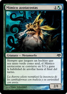 | Rules | Whenever you cast a spell that's both green and blue, Shorecrasher Mimic has base power and toughness 5/3 until end of turn and gains trample until end of turn. |