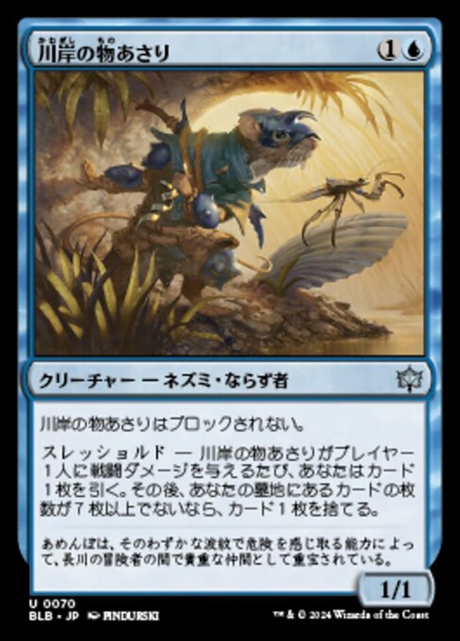 | Rules | Shoreline Looter can't be blocked. Threshold — Whenever Shoreline Looter deals combat damage to a player, draw a card. Then discard a card unless seven or more cards are in your graveyard. |