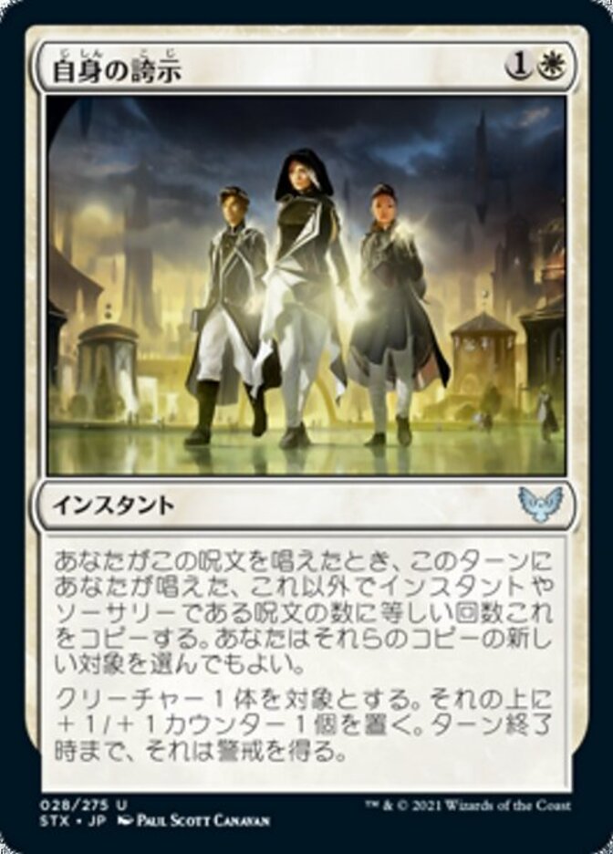 | Rules | When you cast this spell, copy it for each other instant and sorcery spell you've cast this turn. You may choose new targets for the copies. Put a +1/+1 counter on target creature. It gains vigilance until end of turn. |