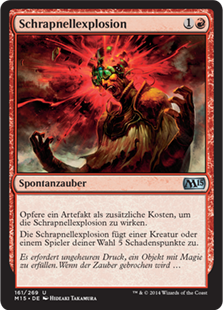 | Rules | As an additional cost to cast this spell, sacrifice an artifact. Shrapnel Blast deals 5 damage to any target. |