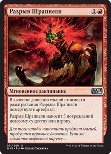 | Rules | As an additional cost to cast this spell, sacrifice an artifact. Shrapnel Blast deals 5 damage to any target. |