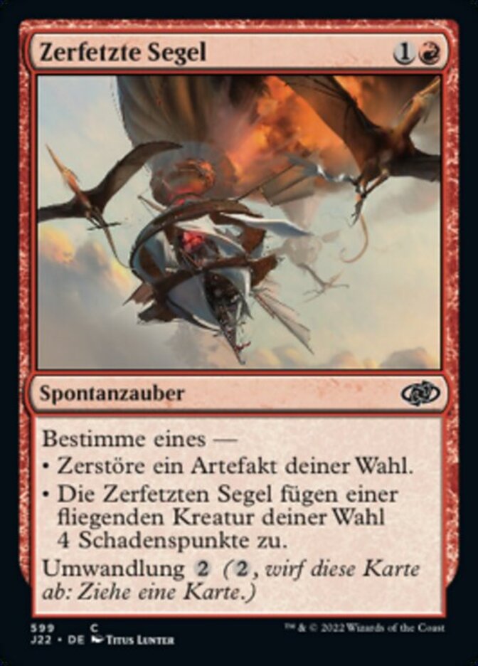 | Rules | Choose one — • Destroy target artifact. • Shredded Sails deals 4 damage to target creature with flying. Cycling (, Discard this card: Draw a card.) |