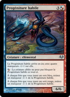 | Rules | Shrewd Hatchling enters the battlefield with four -1/-1 counters on it. : Target creature can't block Shrewd Hatchling this turn. Whenever you cast a blue spell, remove a -1/-1 counter from Shrewd Hatchling. Whenever you cast a red spell, remove a -1/-1 counter from Shrewd Hatchling. |