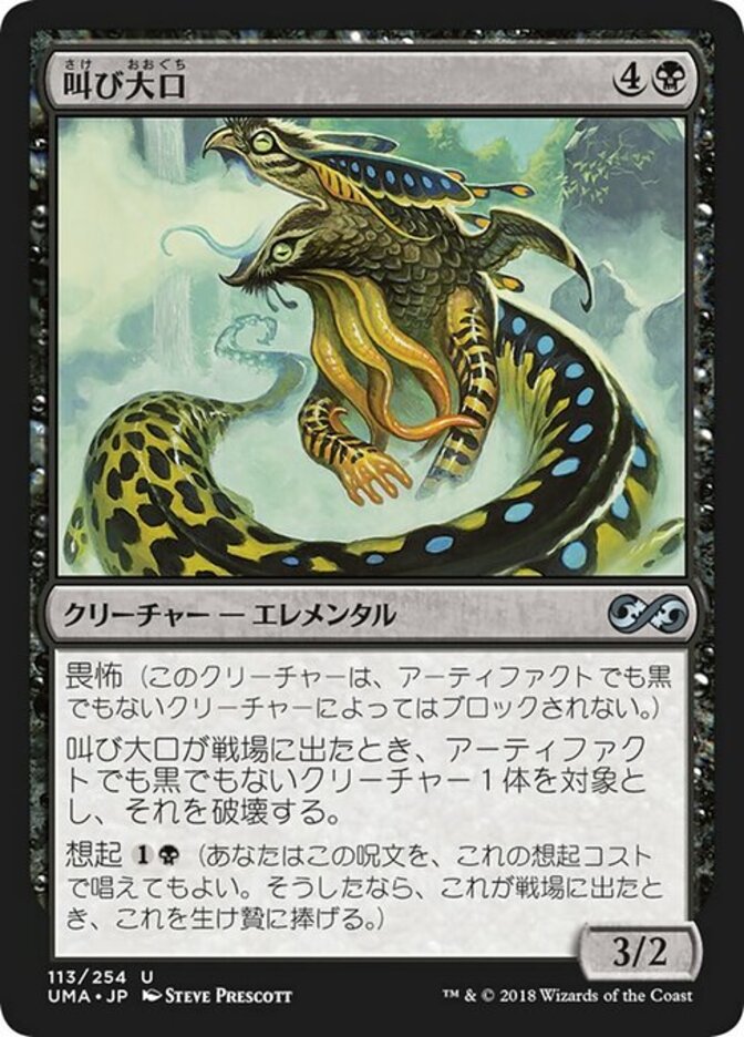 | Rules | Fear (This creature can't be blocked except by artifact creatures and/or black creatures.) When Shriekmaw enters the battlefield, destroy target nonartifact, nonblack creature. Evoke (You may cast this spell for its evoke cost. If you do, it's sacrificed when it enters the battlefield.) |