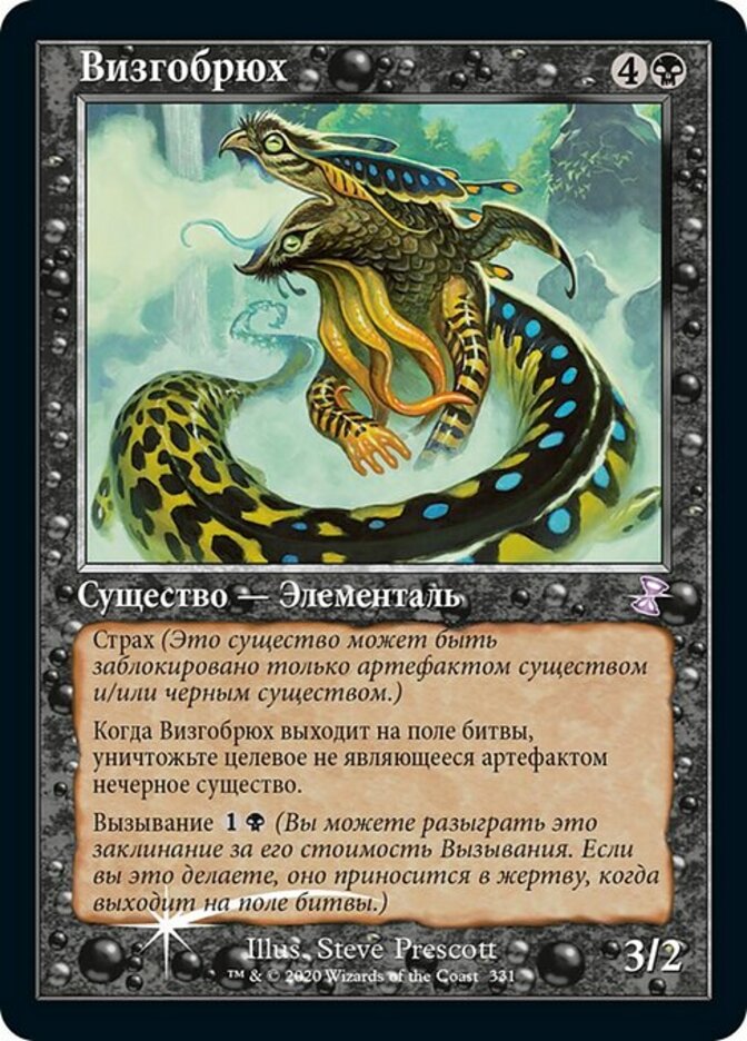 | Rules | Fear (This creature can't be blocked except by artifact creatures and/or black creatures.) When Shriekmaw enters the battlefield, destroy target nonartifact, nonblack creature. Evoke (You may cast this spell for its evoke cost. If you do, it's sacrificed when it enters the battlefield.) |