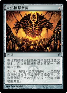 | Rules | At the beginning of your upkeep or whenever you cast a red spell, put a charge counter on Shrine of Burning Rage. , , Sacrifice Shrine of Burning Rage: It deals damage equal to the number of charge counters on it to any target. |
