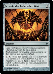 | Rules | At the beginning of your upkeep or whenever you cast a red spell, put a charge counter on Shrine of Burning Rage. , , Sacrifice Shrine of Burning Rage: It deals damage equal to the number of charge counters on it to any target. |