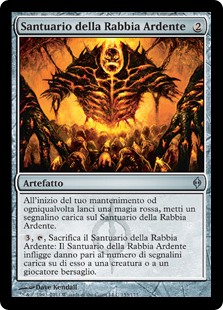 | Rules | At the beginning of your upkeep or whenever you cast a red spell, put a charge counter on Shrine of Burning Rage. , , Sacrifice Shrine of Burning Rage: It deals damage equal to the number of charge counters on it to any target. |