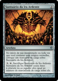 | Rules | At the beginning of your upkeep or whenever you cast a red spell, put a charge counter on Shrine of Burning Rage. , , Sacrifice Shrine of Burning Rage: It deals damage equal to the number of charge counters on it to any target. |
