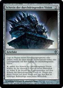 | Rules | At the beginning of your upkeep or whenever you cast a blue spell, put a charge counter on Shrine of Piercing Vision. , Sacrifice Shrine of Piercing Vision: Look at the top X cards of your library, where X is the number of charge counters on Shrine of Piercing Vision. Put one of those cards into your hand and the rest on the bottom of your library in any order. |
