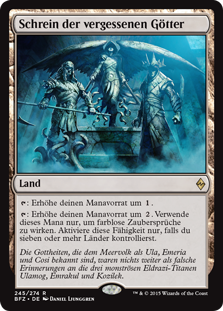 | Flavor | The gods known to the merfolk as Ula, Emeria, and Cosi were nothing more than false memories of a monstrous trinity: the Eldrazi titans Ulamog, Emrakul, and Kozilek. |