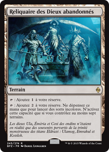 | Flavor | The gods known to the merfolk as Ula, Emeria, and Cosi were nothing more than false memories of a monstrous trinity: the Eldrazi titans Ulamog, Emrakul, and Kozilek. |