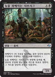 | Rules | Delve (Each card you exile from your graveyard while casting this spell pays for .) When Sibsig Muckdraggers enters the battlefield, return target creature card from your graveyard to your hand. |