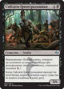 | Rules | Delve (Each card you exile from your graveyard while casting this spell pays for .) When Sibsig Muckdraggers enters the battlefield, return target creature card from your graveyard to your hand. |