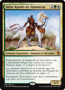 | Rules | Flanking (Whenever a creature without flanking blocks this creature, the blocking creature gets -1/-1 until end of turn.) Creatures your opponents control without flying or reach can't block creatures with power 2 or less. Partner (You can have two commanders if both have partner.) |