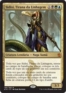 | Rules | Whenever Sidisi, Brood Tyrant enters the battlefield or attacks, mill three cards. Whenever one or more creature cards are put into your graveyard from your library, create a 2/2 black Zombie creature token. |